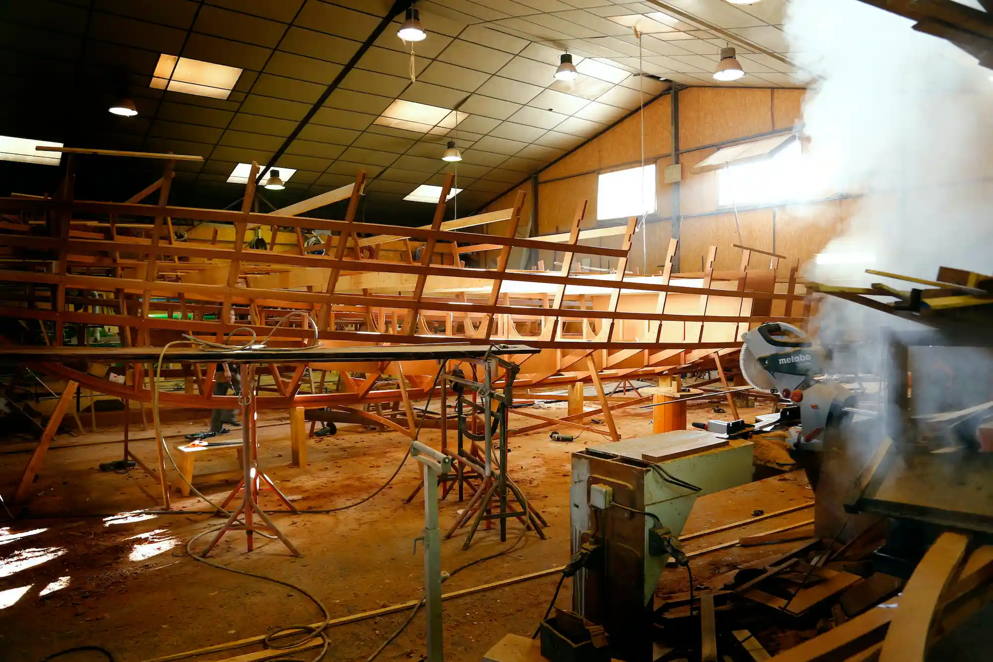 Ce qui frappe lorsqu’on pénètre à l’intérieur du chantier Dubourdieu, c’est d’abord l’odeur chaude du bois. Le bois qui est partout dans cette maison labellisée Entreprise du Patrimoine Vivant (EPV). Des membrures des navires jusqu’au moindre détail de leurs ponts, tout ici n’est que noblesse. Fruit de cette matière naturelle que la main de l’homme entièrement façonne.