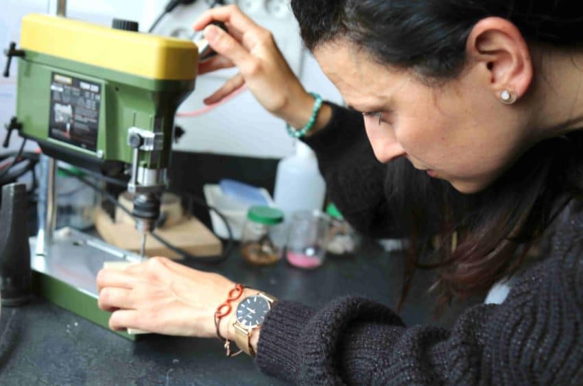 Chez Désir d’y voir, la compétence prime. On ne peut ouvrir de magasin de la marque, créée en 2011 à Mérignac par Damien Miglietta et Ambre Garcia, que si on est à la fois professionnel de santé diplômé et en mesure de procéder au façonnage complet de lunettes. « C’est ce qui fait notre spécificité car on ne forme plus les opticiens au façonnage de lunettes depuis 1997 », explique Géraldine qui peut partir d’une feuille blanche et créer une paire de lunettes comme le souhaite son ou sa client(e). « Toutes les matières sont possibles et toutes les formes, dans la mesure où elles collent avec la correction préconisée. Car ici on adapte la monture en fonction de la correction prescrite par l’ophtalmologue » ». Coquilles d’huitres, tissu, morceau de ballon de rugby ou de crosse de hockey… Géraldine peut tout travailler !
