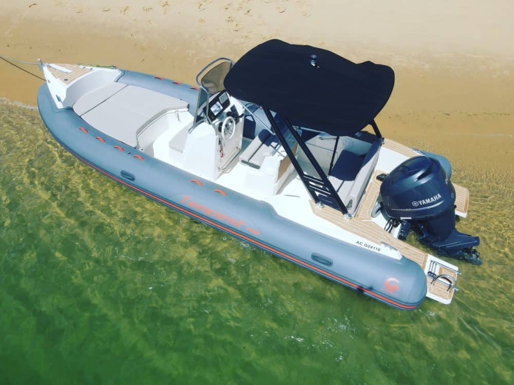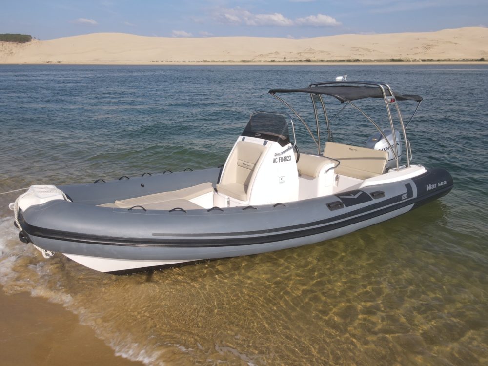 Pour leur seconde saison, Arcanautica propose à la location (sans skipper) trois semi-rigides. Deux Tempest 700 très récents, 225cv, V6 plutôt économe en carburant (compter 80€ en moyenne pour une sortie à la journée) avec deux bains de soleil avant et arrière, une douchette pour se rincer après la baignade, taud de soleil, et enceinte JBL pour passer un moment musical sur l’eau. Ainsi qu’un Mar Sea 650 Confort.
